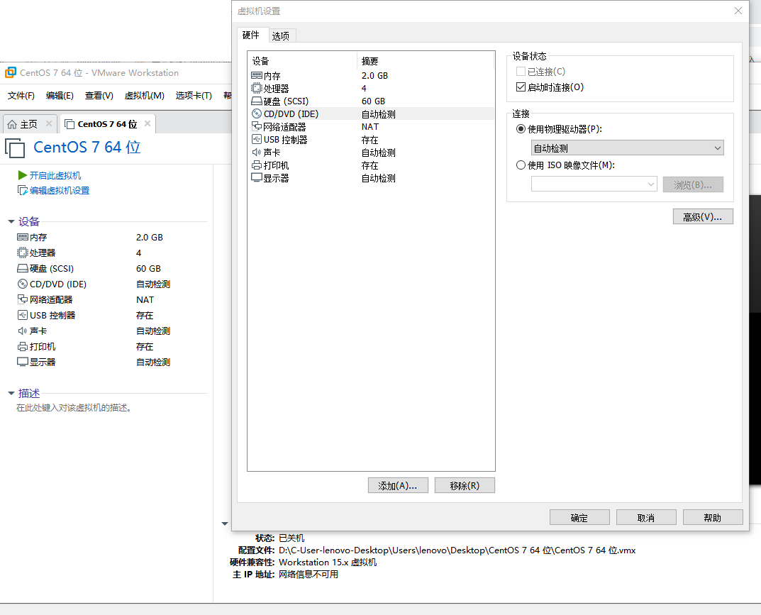 PaperDragon Centos7系列安装教程: 使用材料及来源: Vmware workstation 15.0 传送门-VMware官网 VMware Workstation 15 Pro 永久激活密钥: ``` UG5J2-0ME12-M89WY-NPWXX-WQH88 GA590-86Y05-4806Y-X4PEE-ZV8E0 YA18K-0WY8P-H85DY-L4NZG-X7RAD UA5DR-2ZD4H-089FY-6YQ5T-YPRX6 B806Y-86Y05-GA590-X4PEE-ZV8E0 ZF582-0NW5N-H8D2P-0XZEE-Z22VA ``` - Vmware workstation Pro 14.0 注册码,激活码,永久激活:https://blog.csdn.net/weixin_43458720/article/details/87066810 镜像:CentOS-7-x86_64-DVD-1810.iso 获取地址:阿里云开源镜像站:https://opsx.alibaba.com/mirror 获取地址:网易云开源镜像站:http://mirrors.163.com/ 获取地址:清华大学开源软件镜像站:https://mirrors.tuna.tsinghua.edu.cn/ 国内开源镜像网站列表:https://blog.csdn.net/vencentle/article/details/82693759 操作步骤: 创建合适的主机 装入centos系统 创建合适的主机 创建新的虚拟机,选择自定义,点击下一步 使用自定义的原因是:自定义安装不会安装Vmware Tools,在使用过程中这个东西会造成很多不必要的麻烦。 选择虚拟机硬件兼容性 这里选择稍后安装操作系统,减少不必要的麻烦 选择操作系统版本(按图上来) 处理器配置 如果你使用虚拟机作为服务器的话,建议处理器数量至少为2个 内存大小 图形化系统至少为3G 非图形化按需分配,最少1G,这里为示范 选择网络模式(后面需要重新配置,暂时默认) 创建虚拟磁盘 虚拟机创建完成 后期调整 1挂载光盘 2调整CPU技术 3调整内存大小 4调整网络模式 5删除多余硬件-打印机 开机安装 分盘 网络配置,更改主机名 返回设置网络核对时间 初学者建议关闭 Kdump 点击开始安装按钮安装,并等待安装完毕 输入root密码 如果密码输入太简单,双击Done按钮完成强制创建 安装完成 输入账号密码登陆
